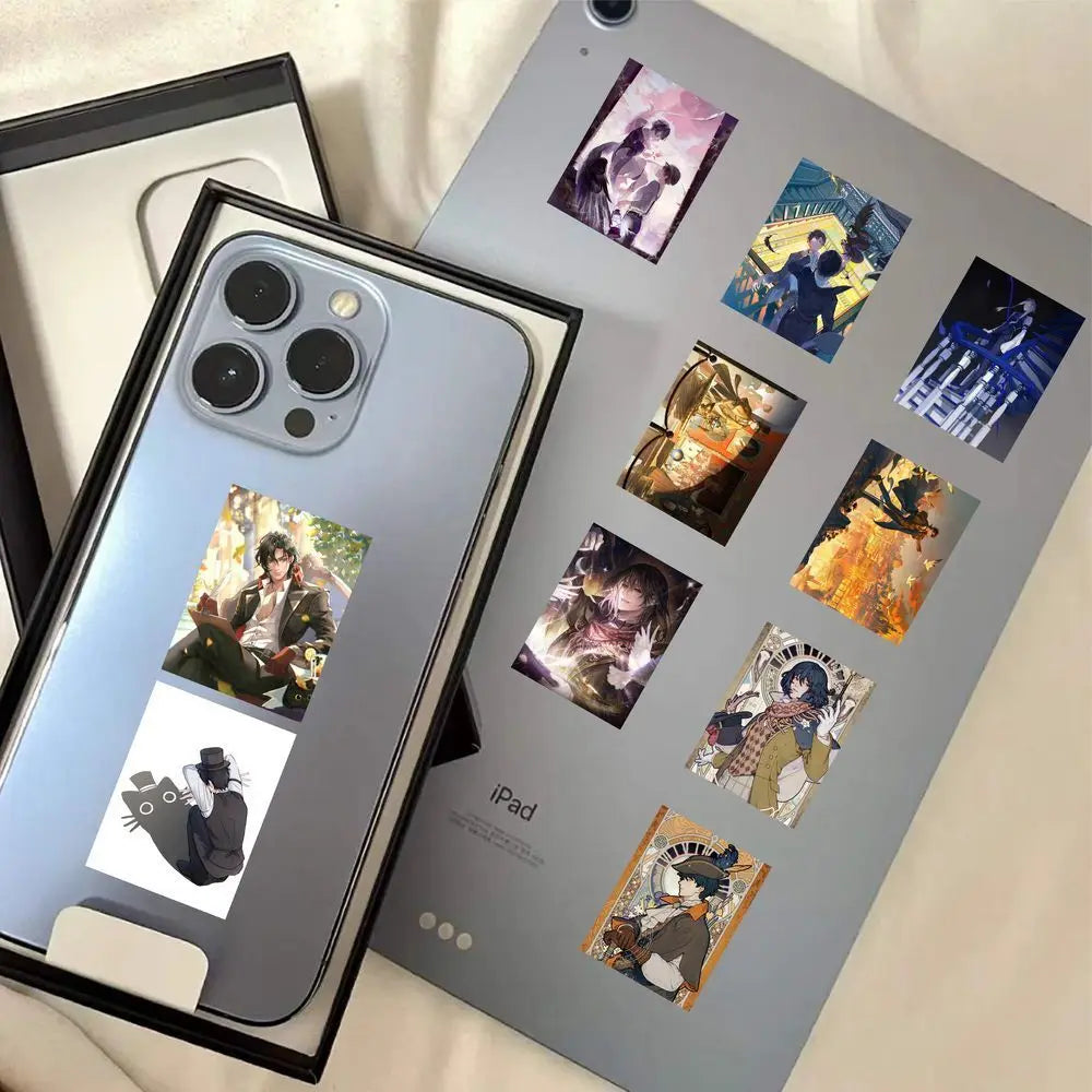 Crafted from waterproof and fade-resistant vinyl, these stickers are built to last. The vibrant HD printing ensures crisp colors and fine details, making them perfect for decorating laptops, notebooks, water bottles, phone cases, luggage, and more. Each piece features unique artwork that embodies the series’ mysterious atmosphere and steampunk charm.