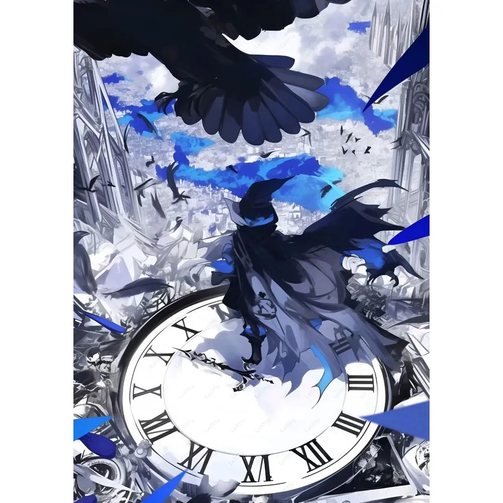 Experience the grandeur and mystery of Lord of the Mysteries with this Fool and the Clock Tower poster, showing Klein Moretti in full arcane regalia standing atop a broken clockface. Surrounded by ravens and fragments of time, this artwork represents destiny, chaos, and control.